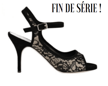 Chaussures de tango Tangolera. Fond beige dentelle noire très résistante. Avant pied très enveloppant. Confort des coussinets plantaires spécificité de Tangolera.